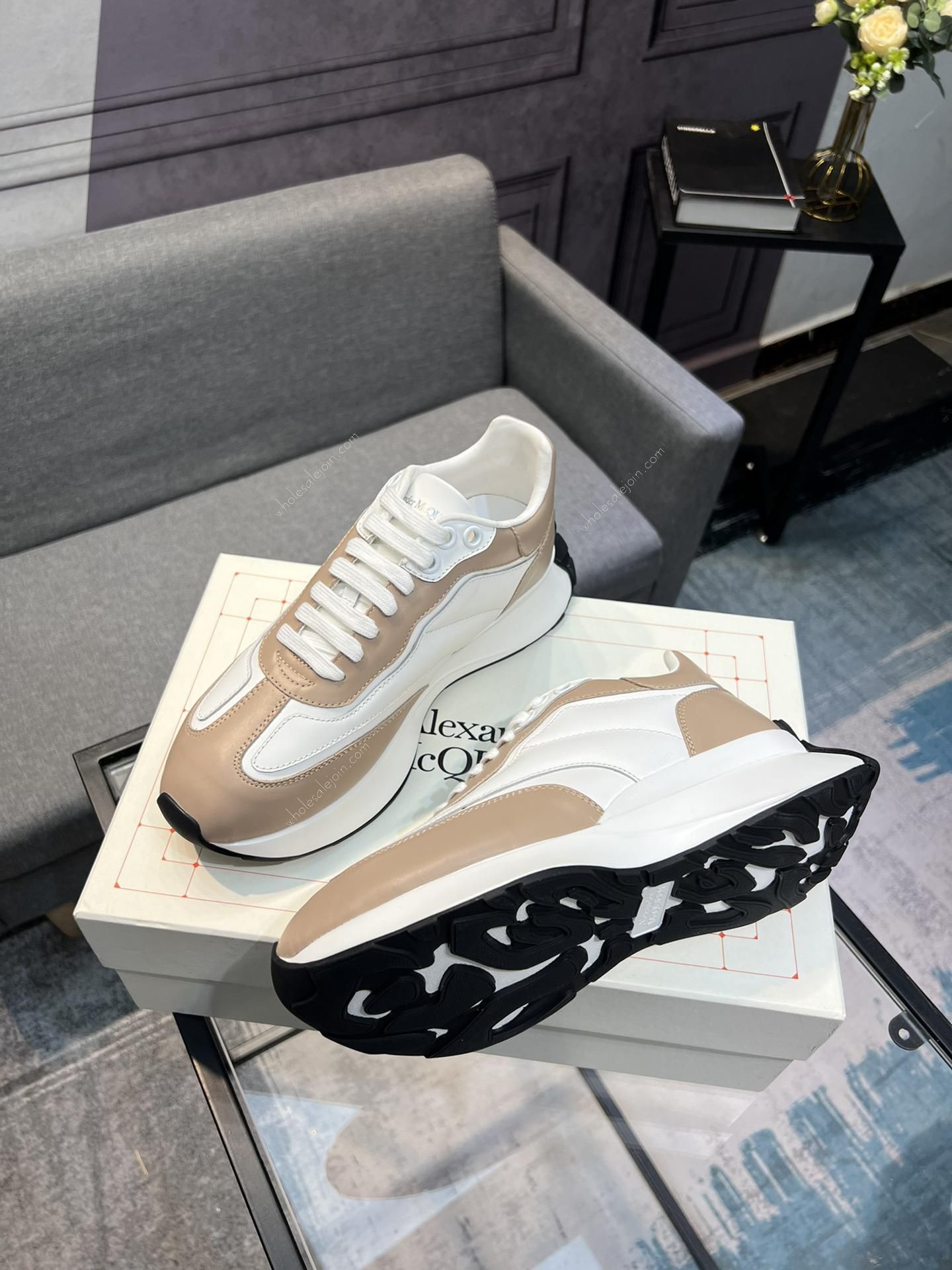Alexander McQueen Sneakers Casual Shoes White Brown Men & Woman