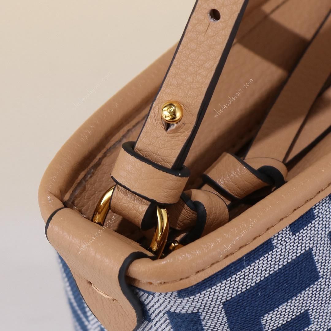 Made of jacquard fabric with the iconic logo. Decorated with cowhide, it features a zipper closure with a long knotted leather zipper pull. With an inner compartment lined with striped fabric, the bag features a detachable long shoulder strap and leather handles, both with hand-stitching for easy shoulder or hand carry.