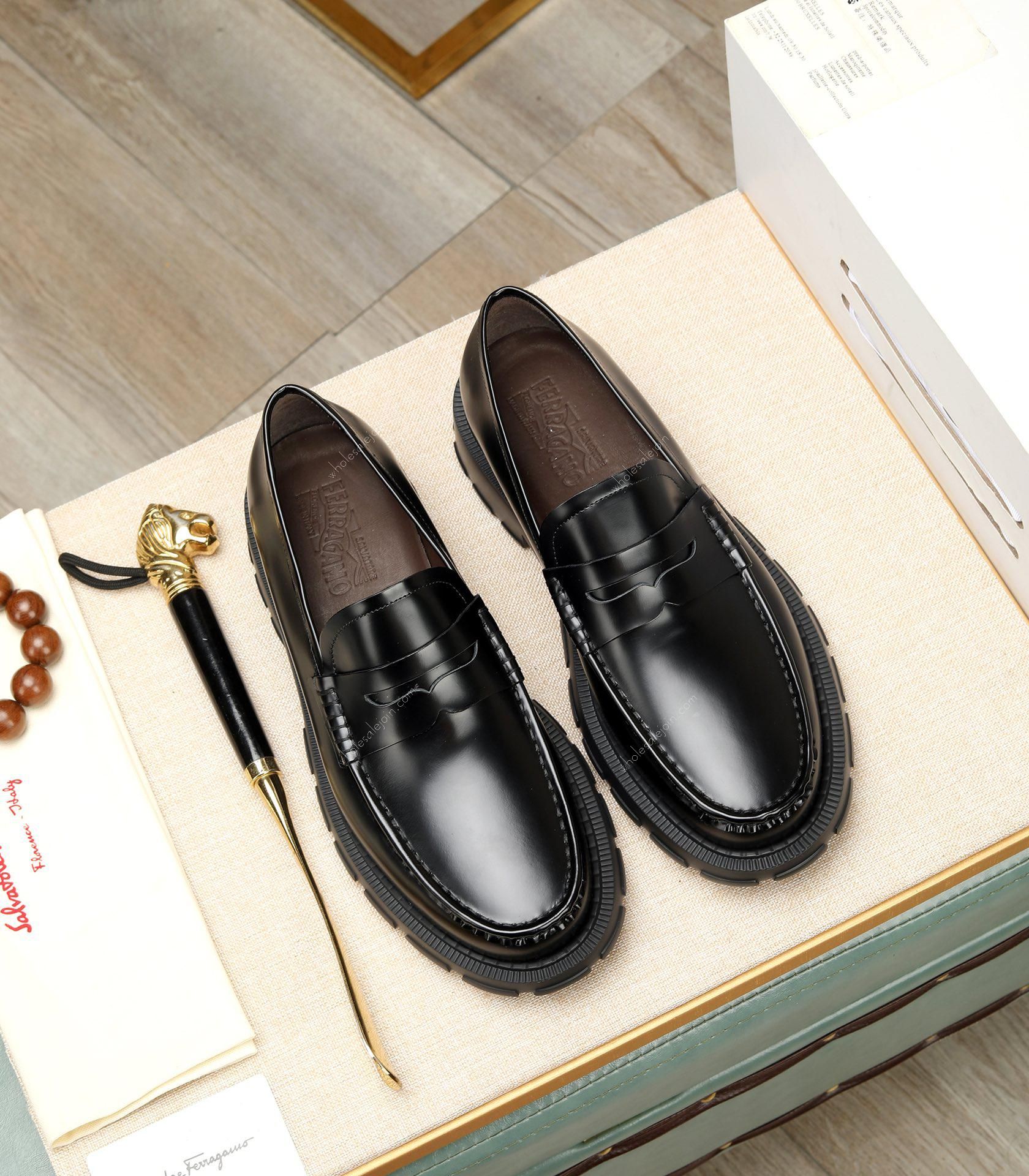 Ferragamo High Quality Leather Shoes Men's