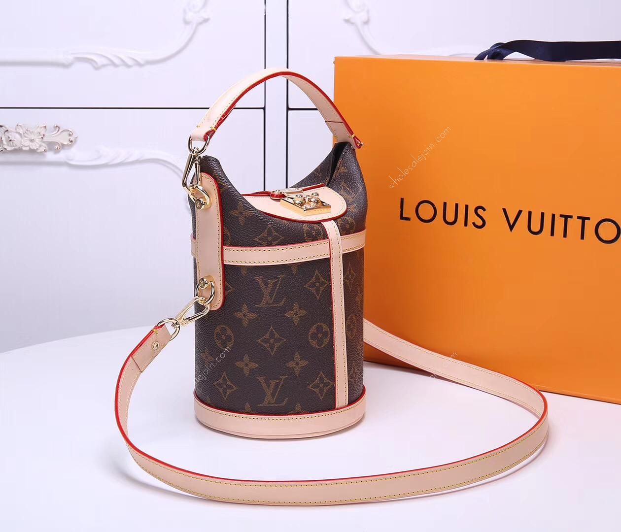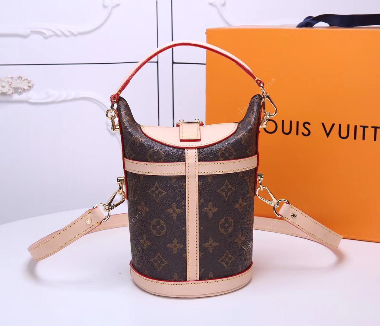 DUFFLE Handbag The Duffle handbag, which is loved in the spring and summer series, is a modified design by Nicolas Ghesquière, artistic director of women's wear. Made of soft Monogram canvas and equipped with a finely crafted iconic S-shaped lock, this hand-held and shoulder-carrying bag is a fashionable accessory for daytime or evening wear.