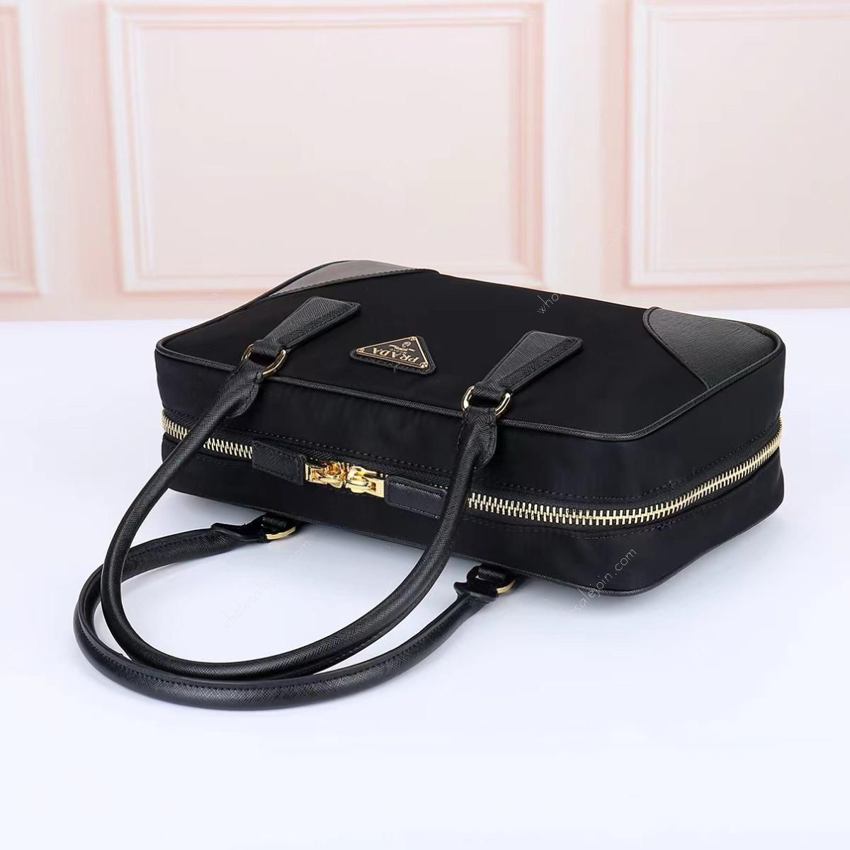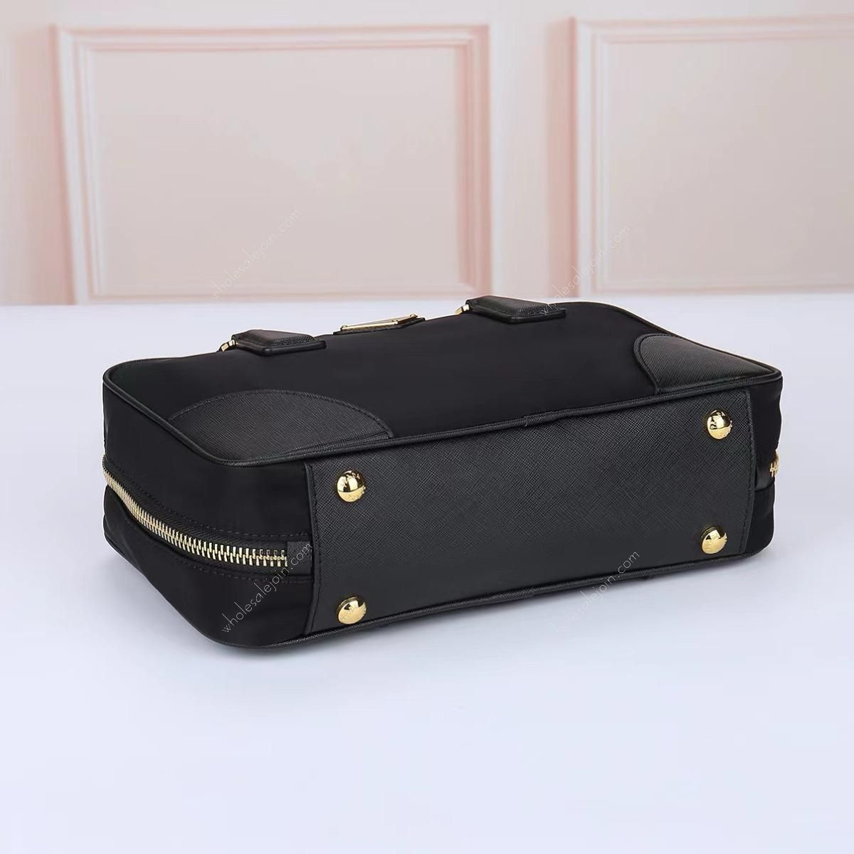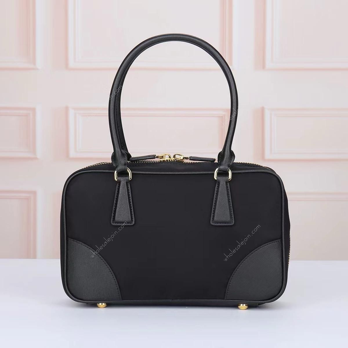 Made of chic and noble imported nylon fabric, the bag has an elegant and simple body design with a classic golden triangle logo on the front. The long handle can be carried by hand or under the armpit, and it has three compartments to meet your exquisite storage needs.