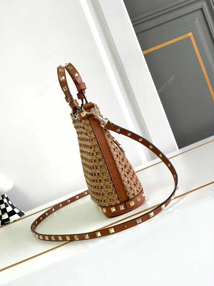 Raffia and leather bucket bag