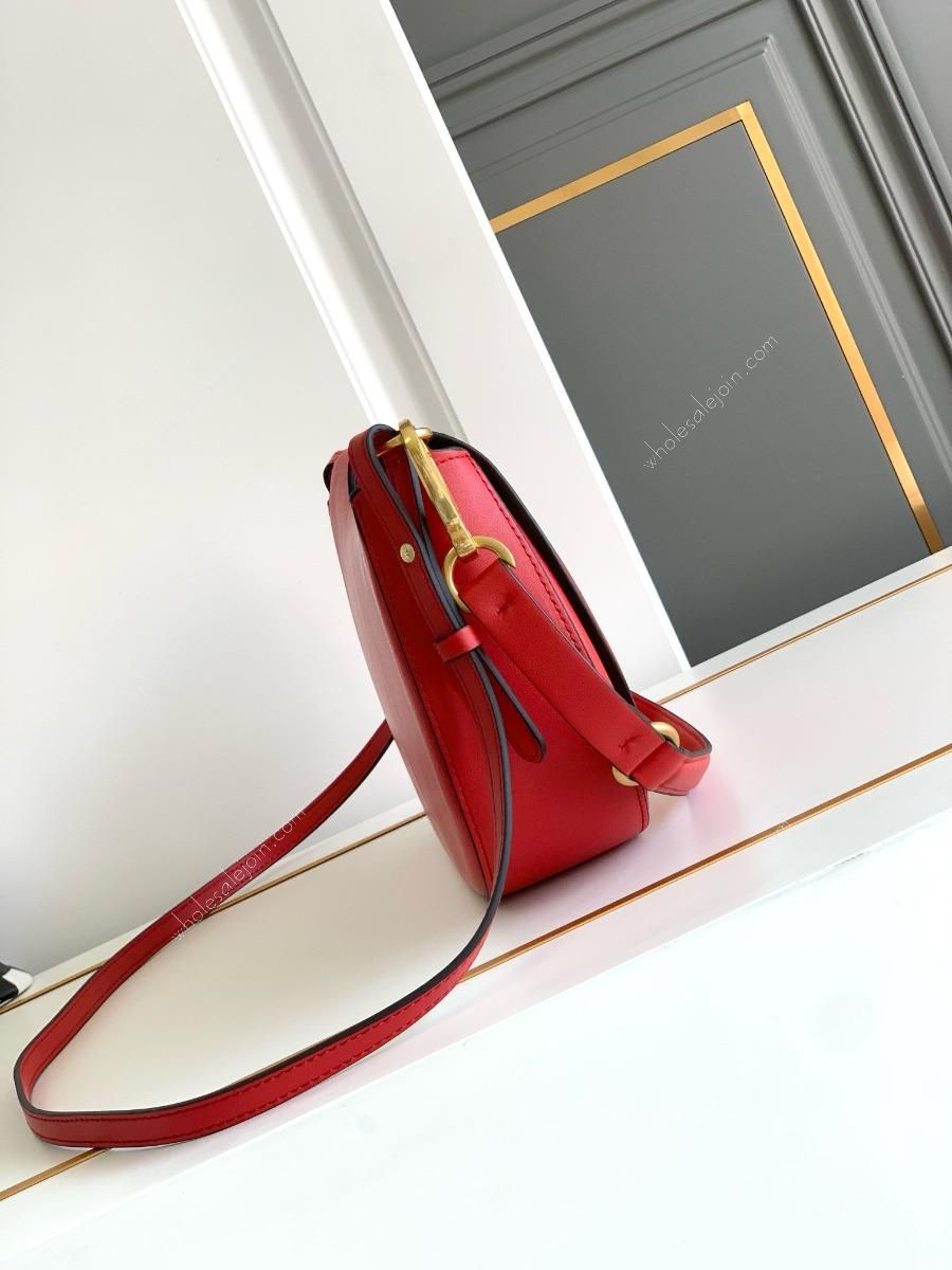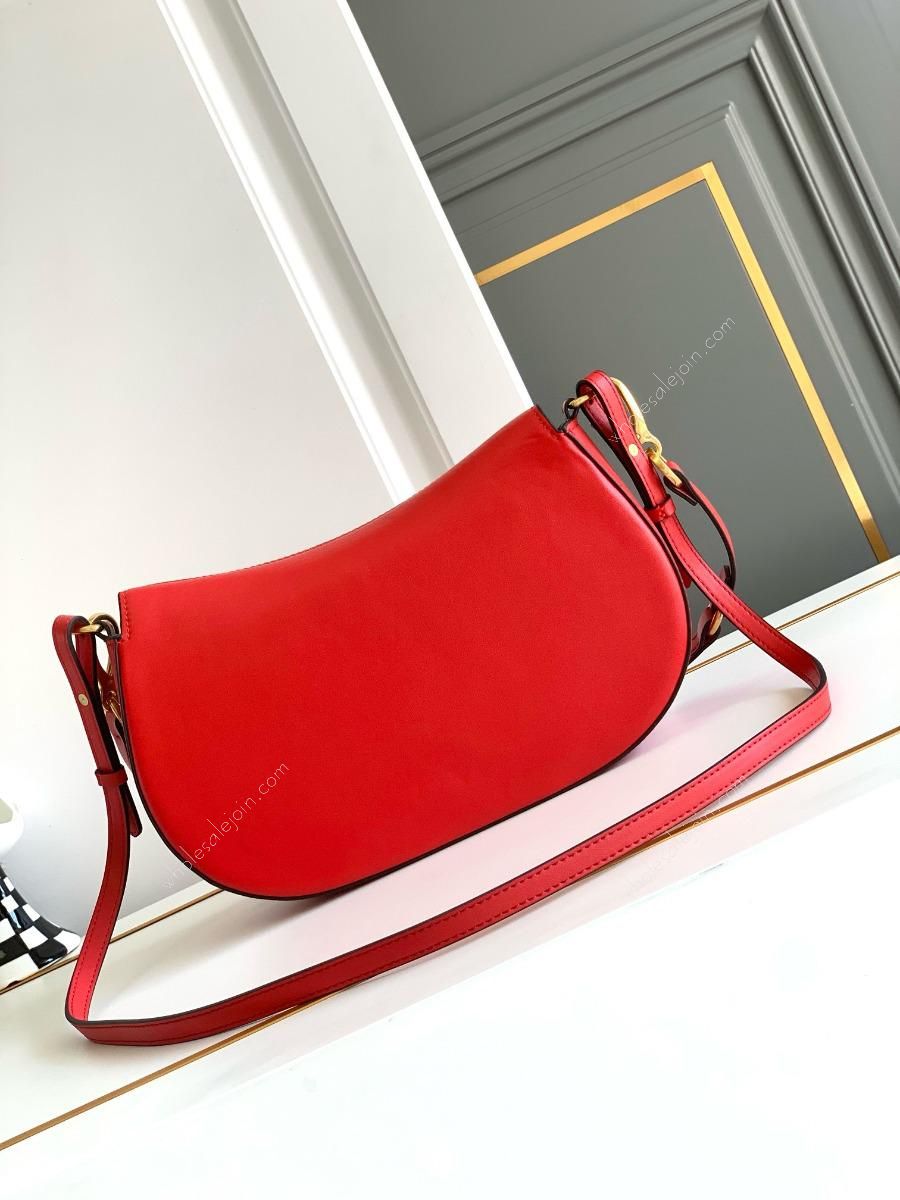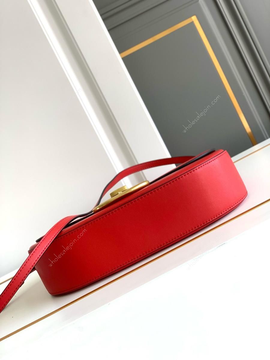 Calfskin bag with bronze gilt details. This bag can be worn as a shoulder strap or under the arm, a casual retro style that goes with everything