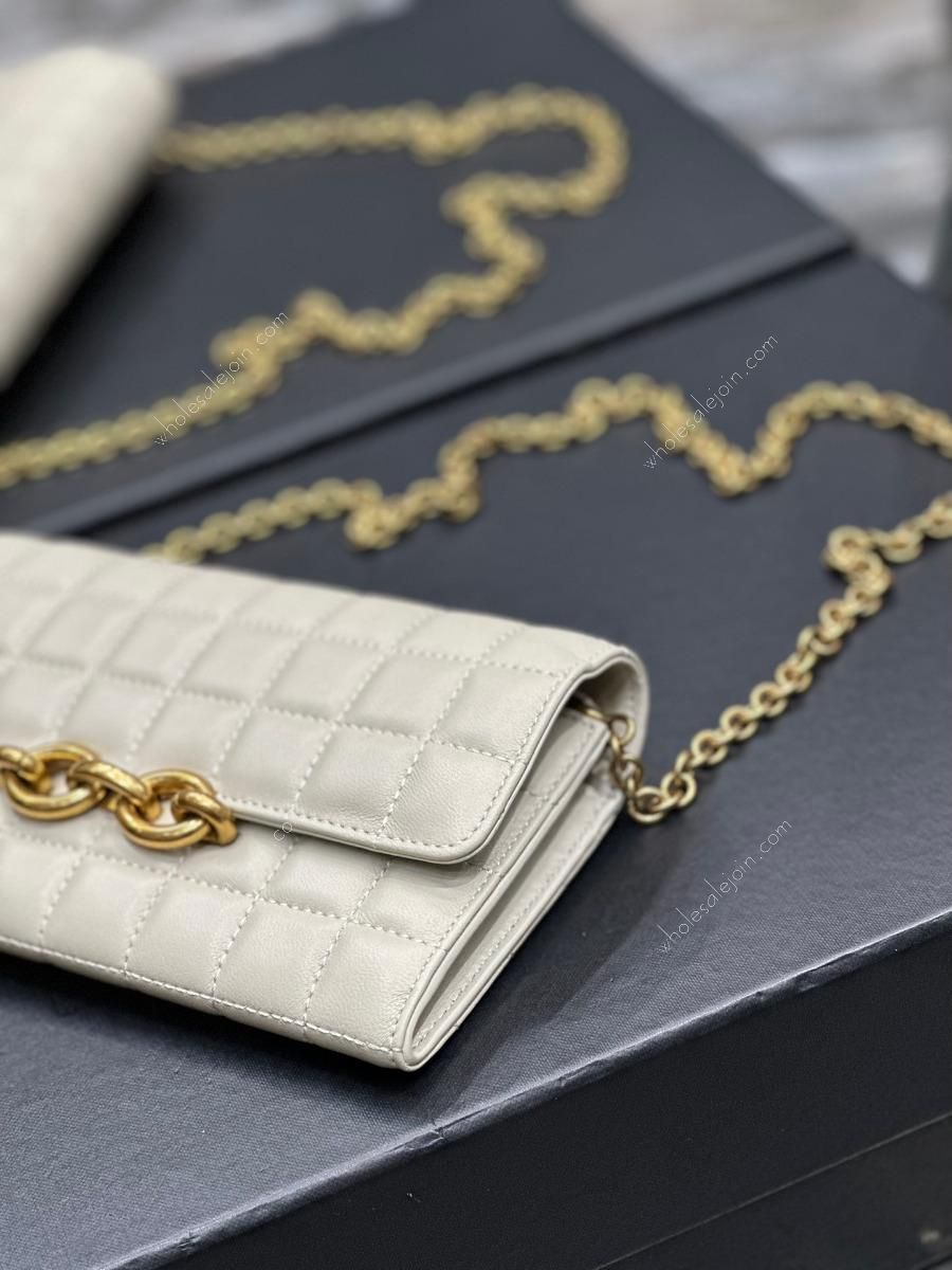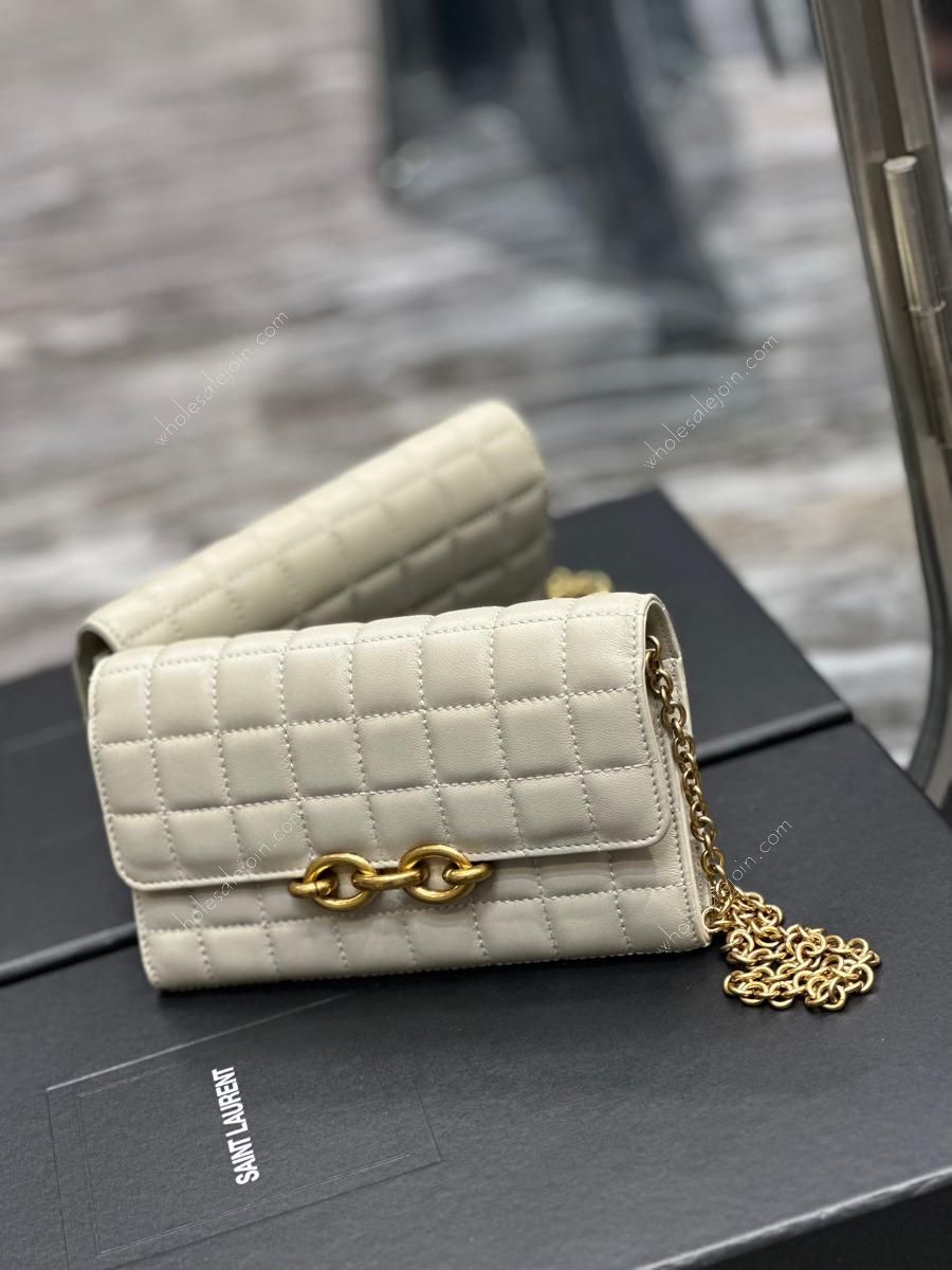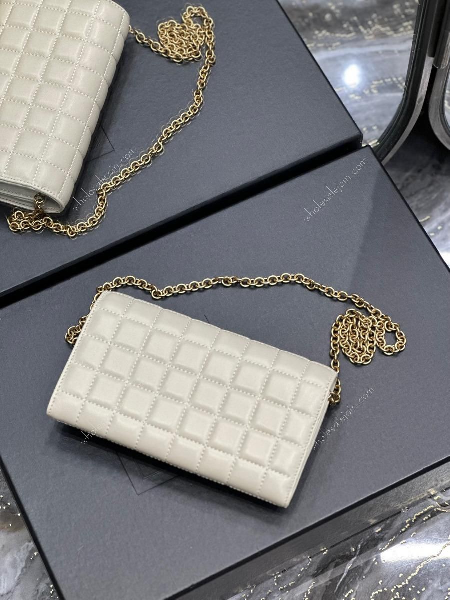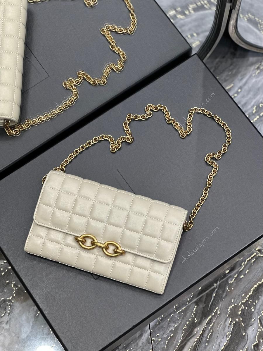 Chain length: 37cm Quilted lambskin chain bag, absolutely belongs to the love at first sight series! The square quilted pattern exudes a charming diamond-like brilliance! The unique metal hardware buckle is like two links of a chain. The soft lambskin feels very comfortable. The whole bag is made of lambskin inside and outside, and it is very comfortable regardless of the leather texture and softness! There are six card slots, a zipper pocket, a main compartment, and a flat pocket inside the bag. Real practicality and beauty coexist!